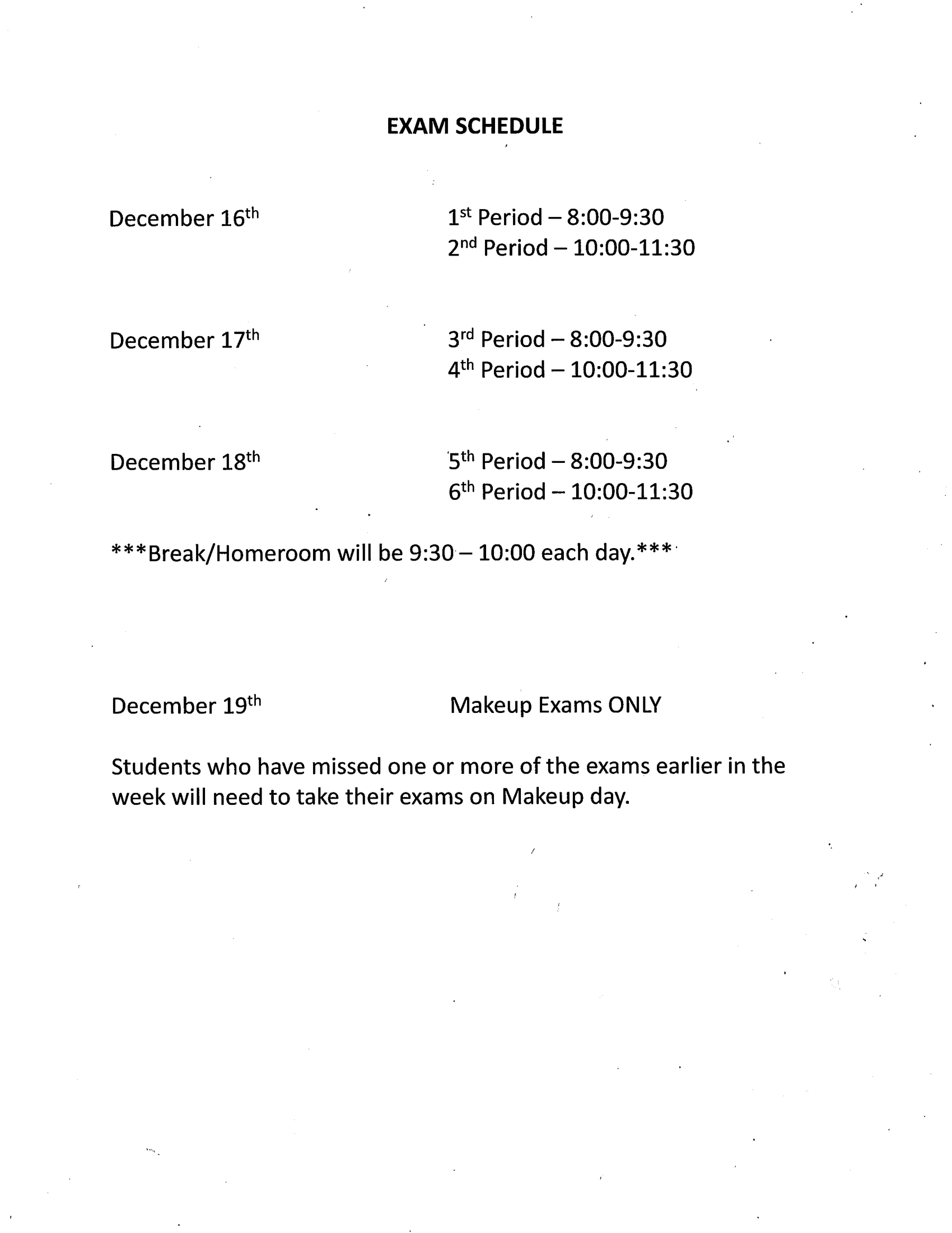 Exam Schedule